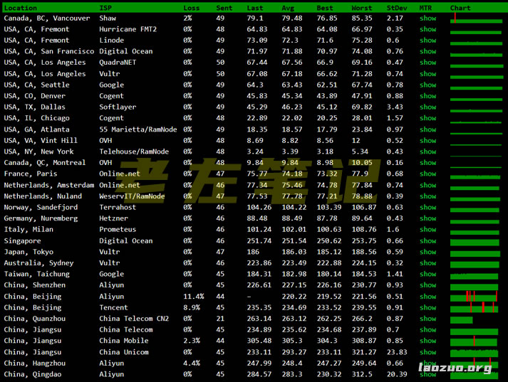 目前有四个机房,我们可以参考下看看官方提供的测试IP提供的测速记录。
