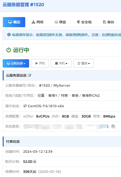 转让:8核8G8M60G盘,香港,年续530,还剩306天300出