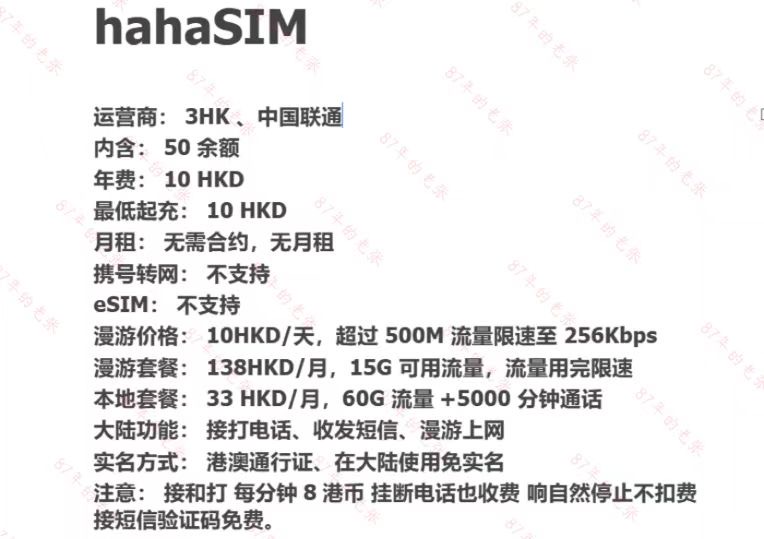 70现货包邮hahasim香港手机卡 免实名 支持咸鱼 无套路