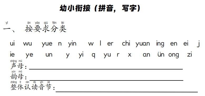家里娃生病,两节幼小衔接课没去。问老师要了试题,自己在电脑上打印出来。现在分享给大家,有需要的家长可以下载。其中”拼读易错点”老师特别标注很重要,要保存好。