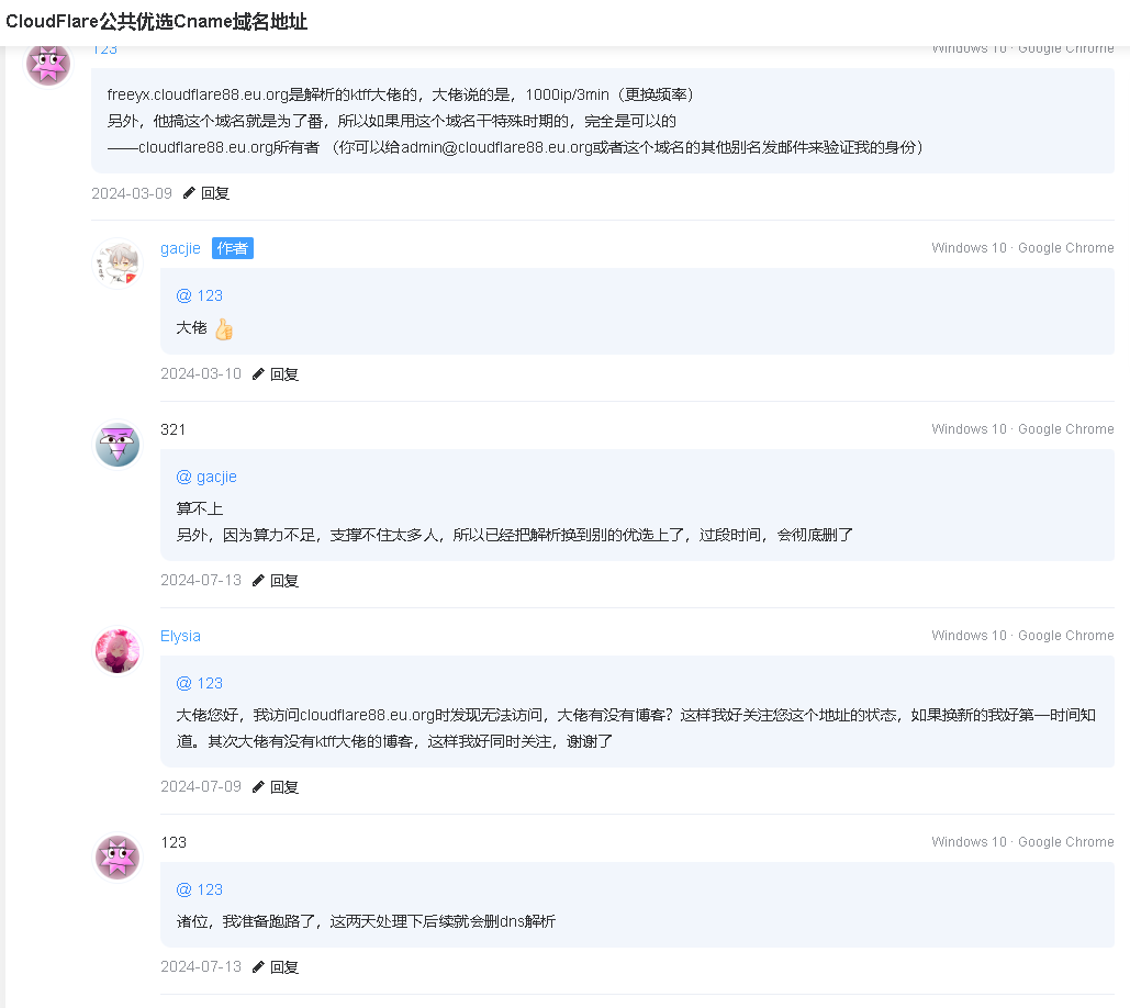 请各位使用优选cname的,及时查看并更新cname域名。