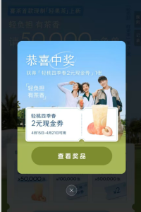 免费抽50000张喜茶赠饮券 亲测中赠饮券一张