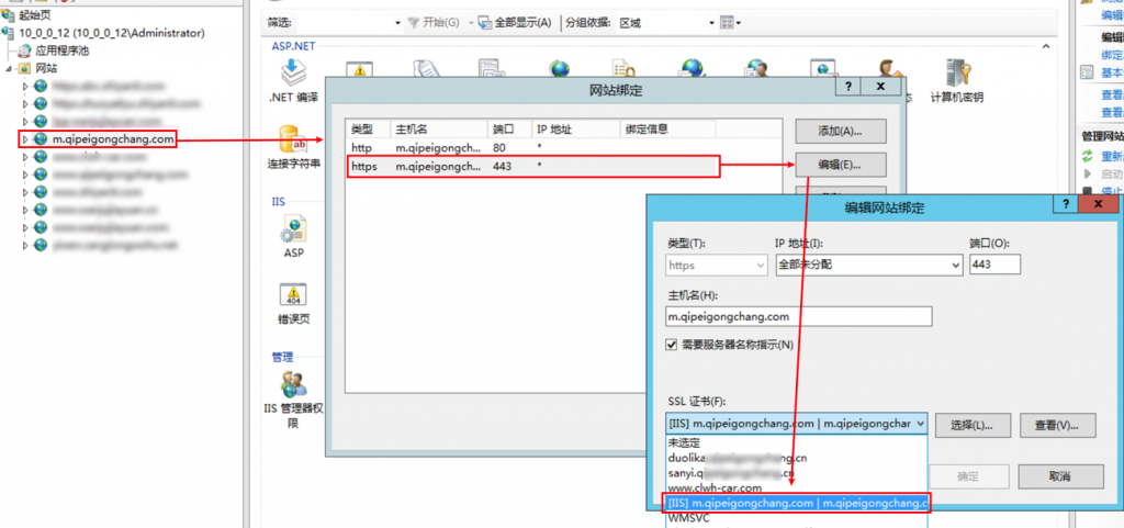 至此我们已经为一个域名配置完成了一个SSL证书,我们看下I *** 下这个域名已经自动绑定并选择了证书(见下图)