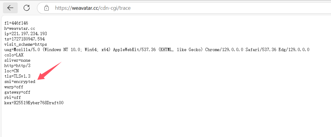 如果显示为sni=plaintext,则表示未使用ECH,目前还在灰度,似乎跟节点有关。