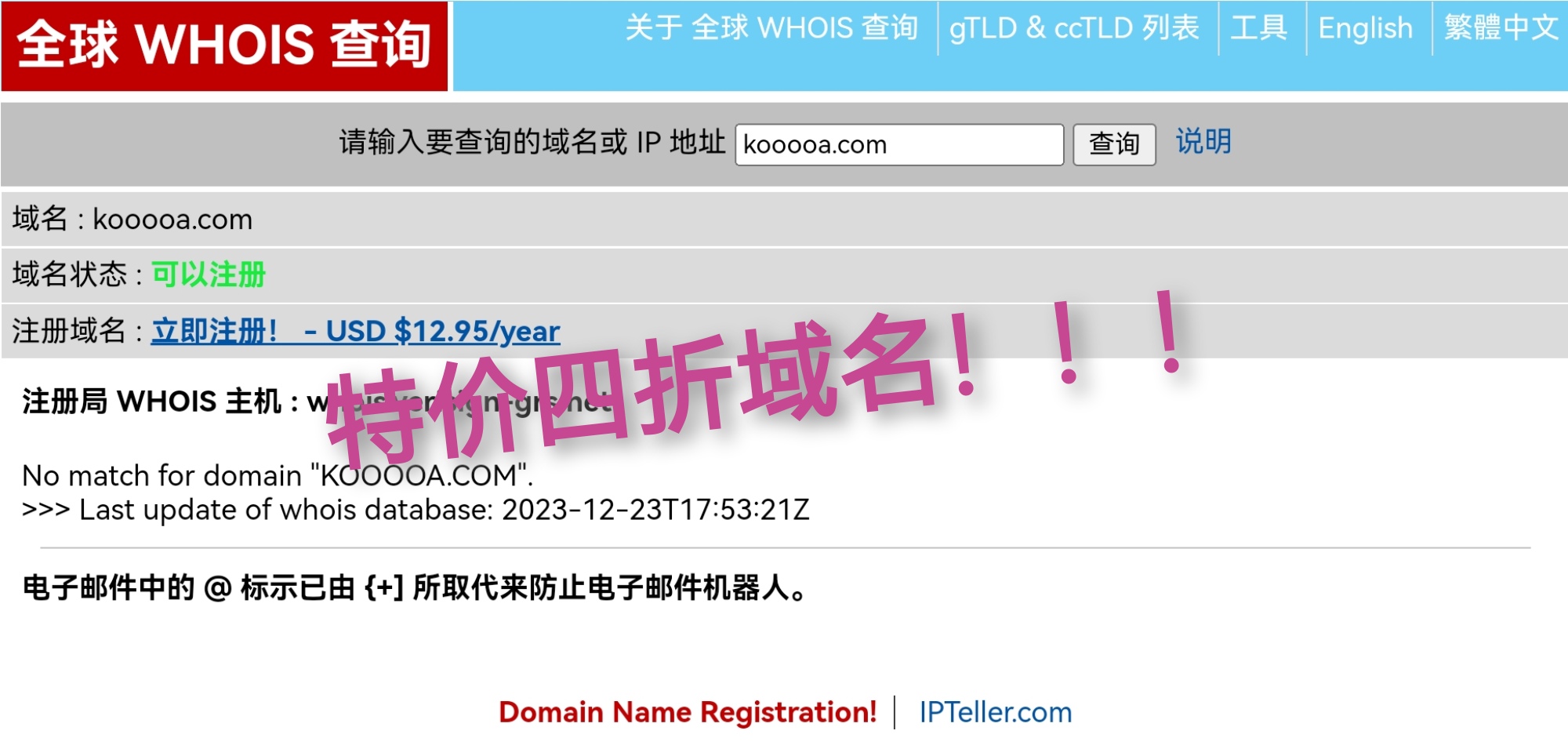 在whois查询未注册域名,发我域名即可