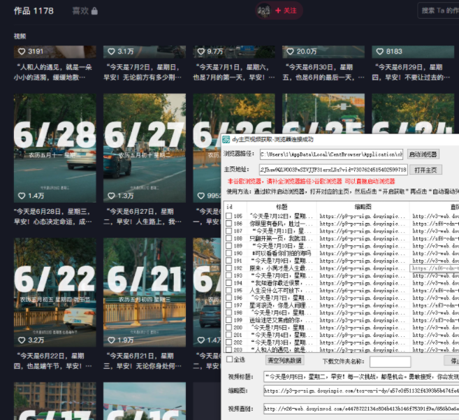 一键批量获取指定博主的全部视频,dy主页视频获取工具