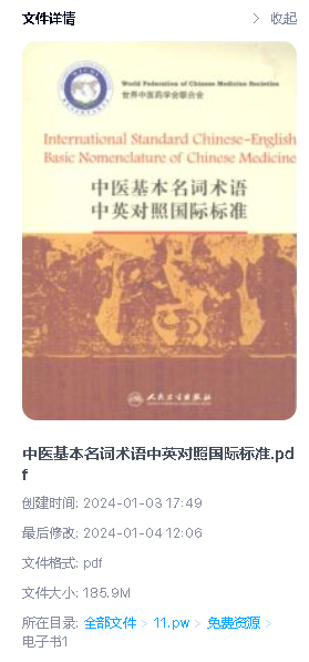 中医基本名词术语中英对照国际标准pdf下载 期待您的回复!