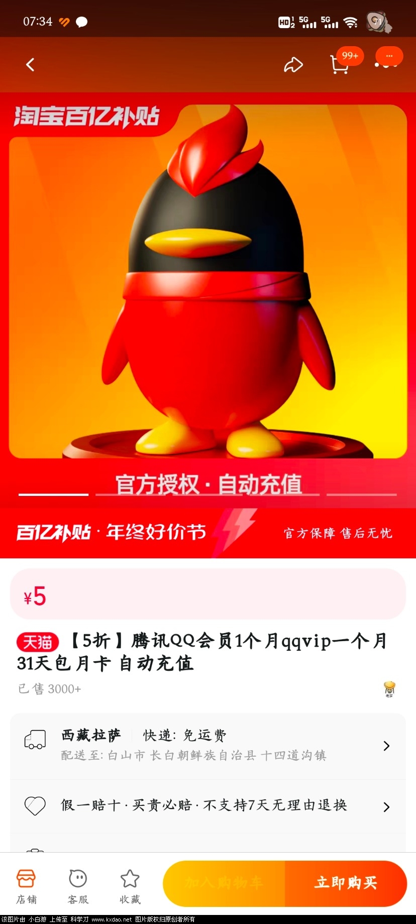 【5折】腾讯QQ会员1个月qqvip一个月31天包月卡 自动充值【包邮】
