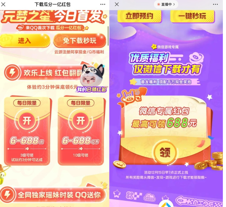 QQ和wx打开地址->下载登录游戏->玩到3级(游戏进去秒退两局就3级了)->返回页面领6扣币和6元红包->之前预约的扣币和红包卡券也可以激活了!